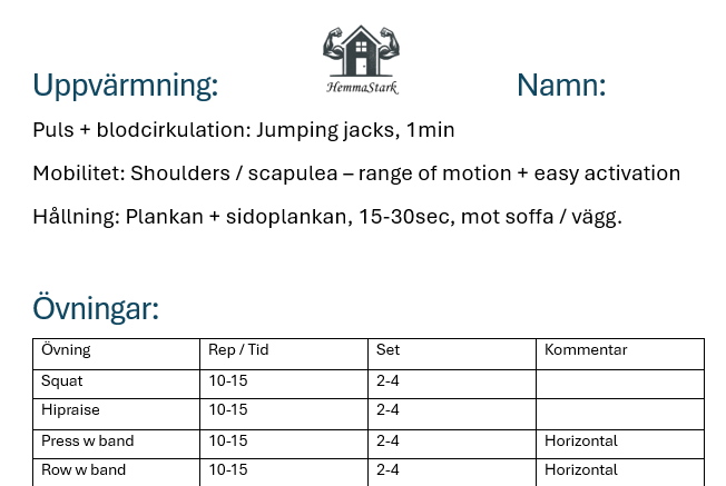 Träning hos dig eller mig, nödvändig utrustning ingår.